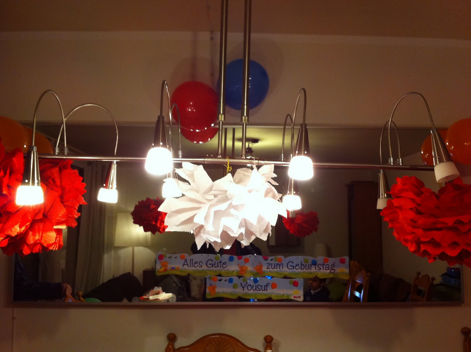 I made these Red and White pom-poms to add to the decor. My son just loved them. The White one is still hanging on the centre light and every morning he wakes up he points his tiny lil finger at it and say pao-pao ! These were so easy-peasy to make.Martha's Stewart's-Pom Pom