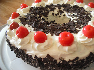 Black Forest Cake..Back in the 90's in my home country the ultimate baked luxuries were Pineapple cakes or black forest cakes. If you had to visit somebody's home these two were the only highly valued options one had to buy at a bakery. It was symbolic and meant that the visitor is showing respect to the host. The Germans off course did not intend anything of the sort...So my husband who grew up in the 80s-and the 90s with little interest in baking thought for so many years that the world is divided into just two types of cakes...you guessed it. I made this for our first Wedding anniversary just last year:)