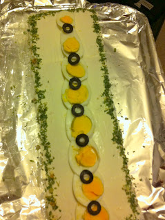 Top with low fat cream cheese. Garnish with hard boiled eggs and olives. Or Cucumber and ice-berg lettuce..its upto you! Chill it in the refrigerator for sometime before serving-