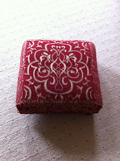 I found a pair of charming little footstools on my first ever venture in a flea market. I just had to have them! The colour did not go with anything in my living room so I used the left over fabric from my dinning chairs to recover it.