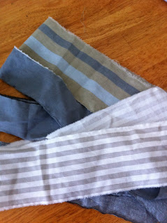 Ok..cut..enough with the dramatics..this was my first try at fabric rosettes that I learned to make just yesterday. I love the combination of grey, blue and mocha. Had this cotton bed sheet that my mother had given me. I ripped just the stripey border off it to accent my dark grey sofa in the living room.