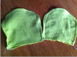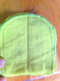 Put one on top of the other and stitch a line through the middle. Now you have 4 layers of fabric stitched together resulting in 4 small pockets. Turn it right side out and stuff the pockets with polyester or cotton. You're done!