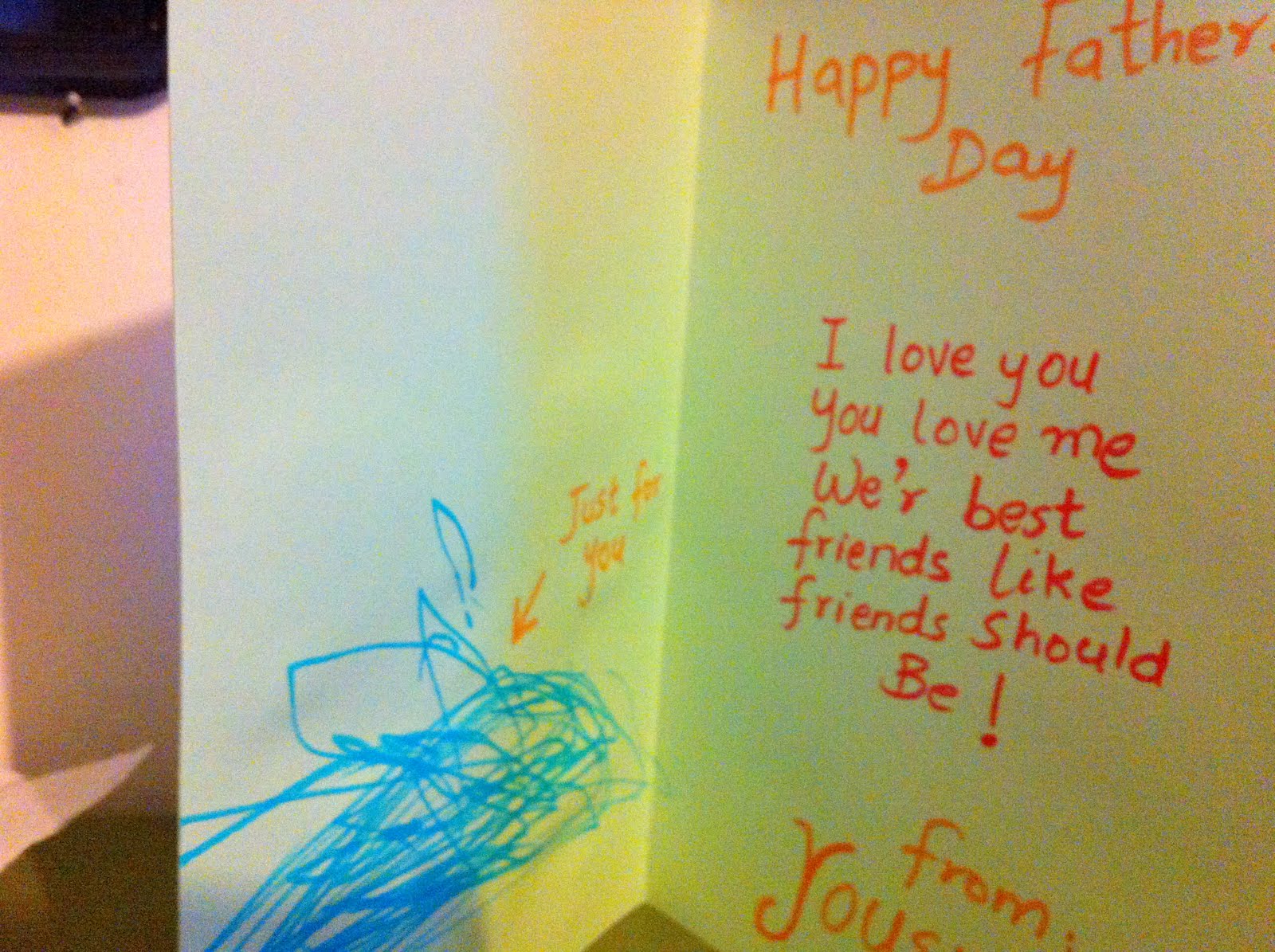 So we set off to make a quick card just a short while before it was time for daddy to come back home from office. I thought we'll give him a surprise in the morning.