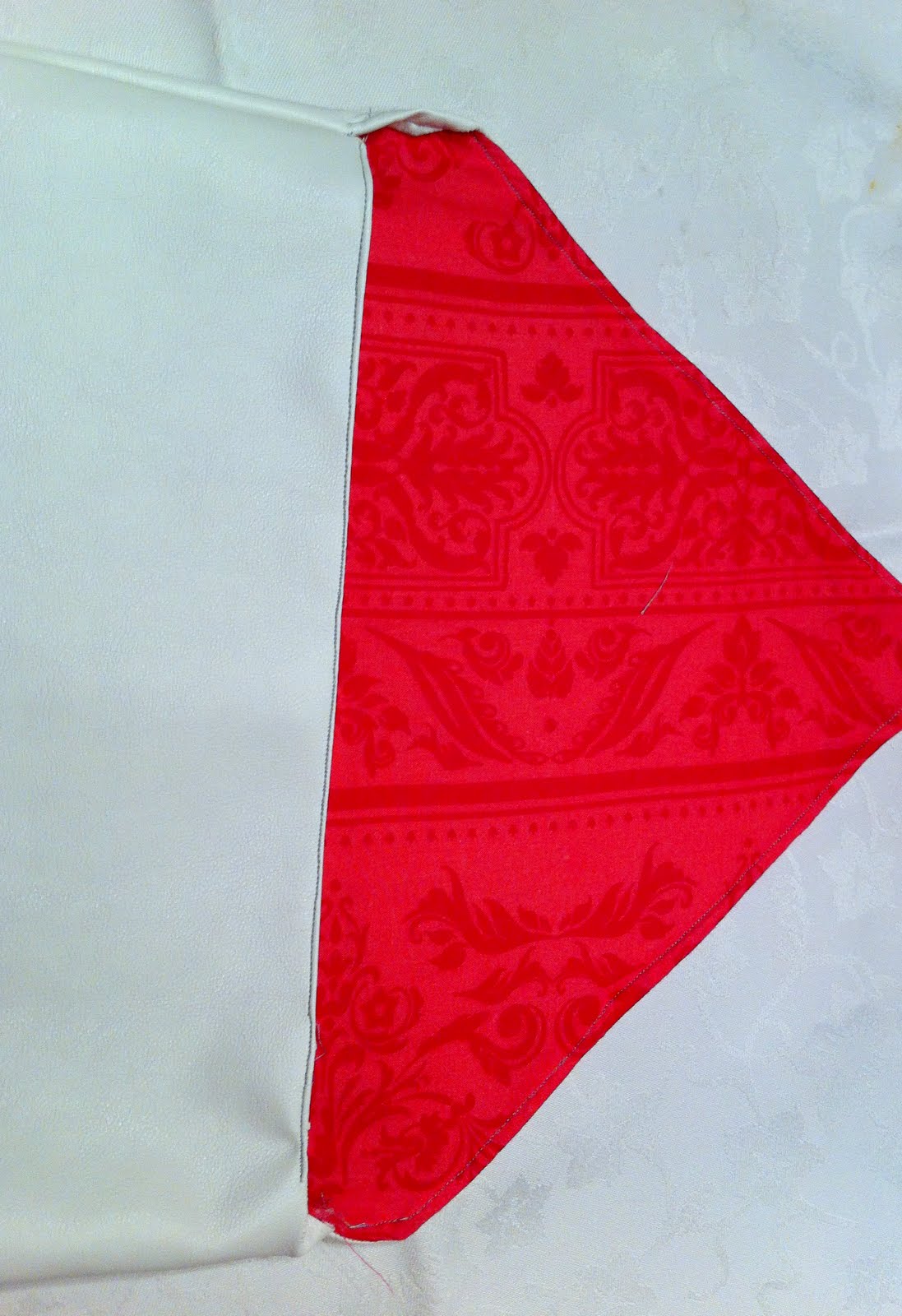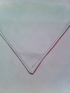 Pin both pieces right sides together. Stitch, leaving space to turn it inside out. (I forgot and had to rip the seam..which made the leather go untidy)This is where I went terribly wrong. I tried doing a top stitch..and because I'm only a beginner at stitching I sew crooked lines :( Shouldn't have done that. Also, on one corner I think I was not careful with the side seam allowance and that corner ended up being slightly wonky!! Practice makes perfect...I'm learning!!