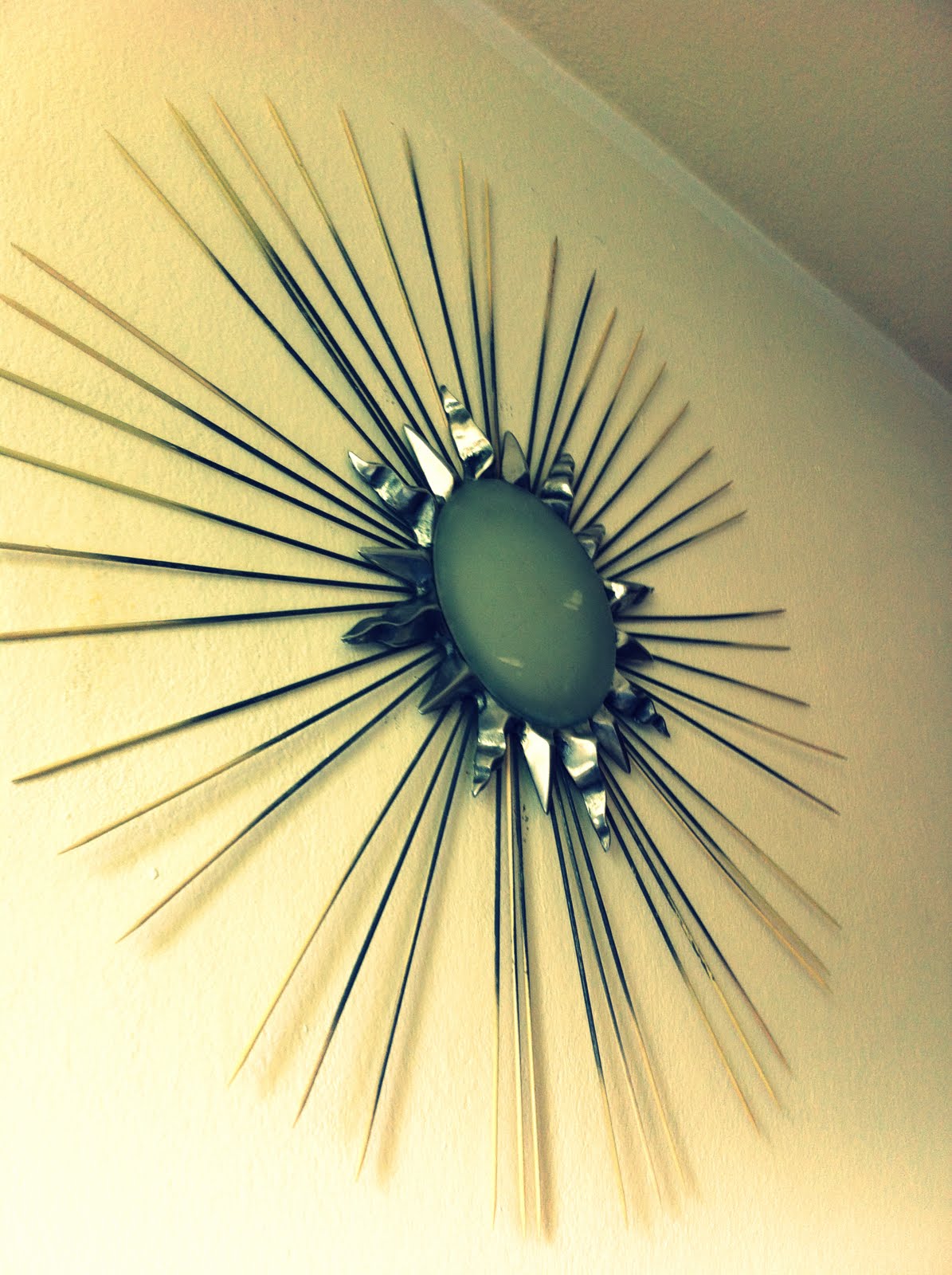 I opted for the bamboo skewers to make the sunburst. I did not have a mirror..but I used an old metal sun wall hang as my centre piece