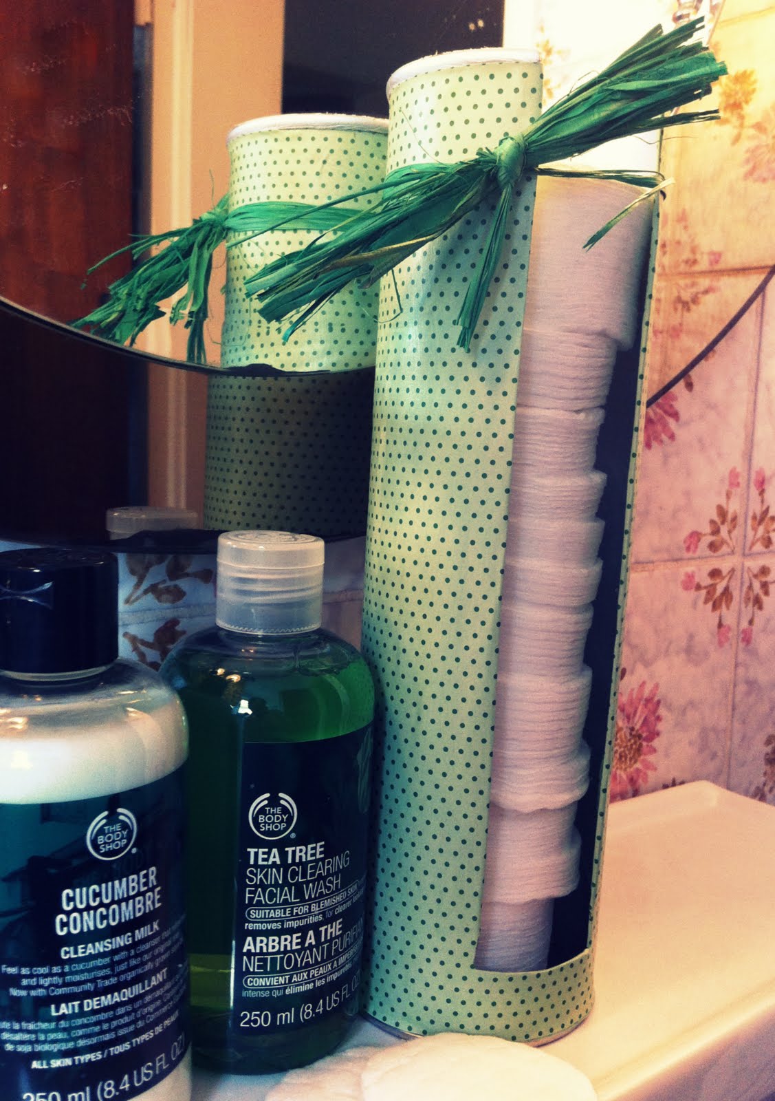 A little straw twine and now I have a practical thing to hold the cotton pads.