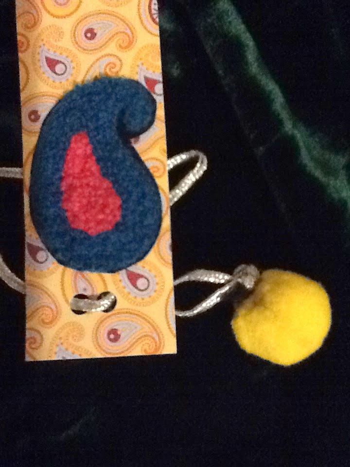 For the thread of the bookmark I used a silver cord with a yellow pom-pom at the end.