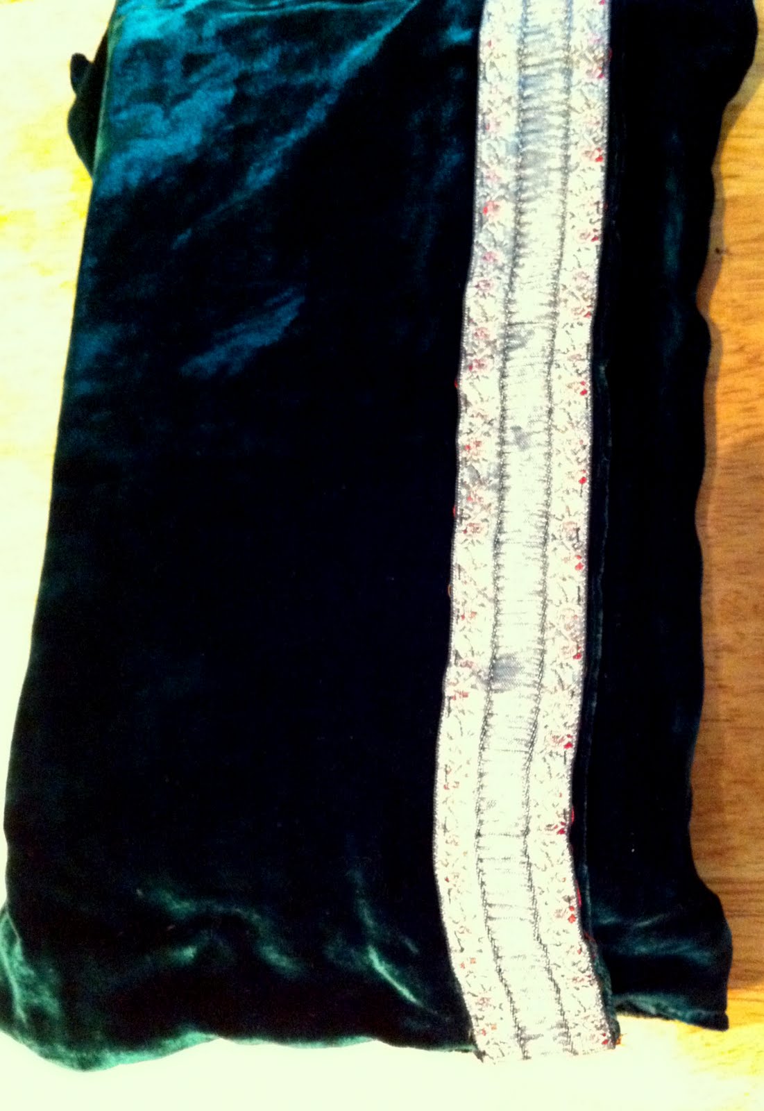 For the case..she made a wrap using the same velvet and some silk hemmed inside. A satiny silver lace was used to add detail and memory..Memory of the dress she made for my last Eid at home. It was the same lace that she used on my dress..which she stitched herself too! Oh and she made a luxurious green velvet stole for me too..all hemmed by hand as a gift :) Thank you mama!!!