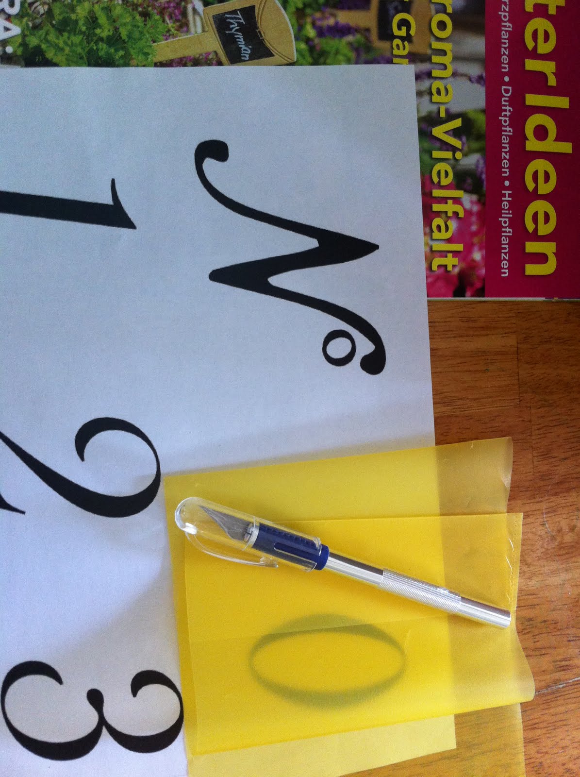 Using a sponge tool I stenciled the numbers on. I just had 2 cartons on hand..so for now we'll learn to count just till 2 :p