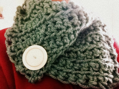 Its a slip on cowl..basically I joined the two ends of my odd rectangle with one corner turned over. Finished it off with a big, chunky button!