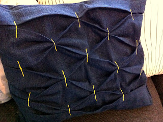 Moving on..with a broken spool holder I took upon the challenge to sew something I had pinned long time back. It seemed do-able and with my minimal skills I followed this tutorial and made my own pillow using an old pair of denims.My husband kept saying 'I didn't wear those much, are you going to cut them? ' Well YES I am and here's what it turned out to be.