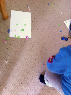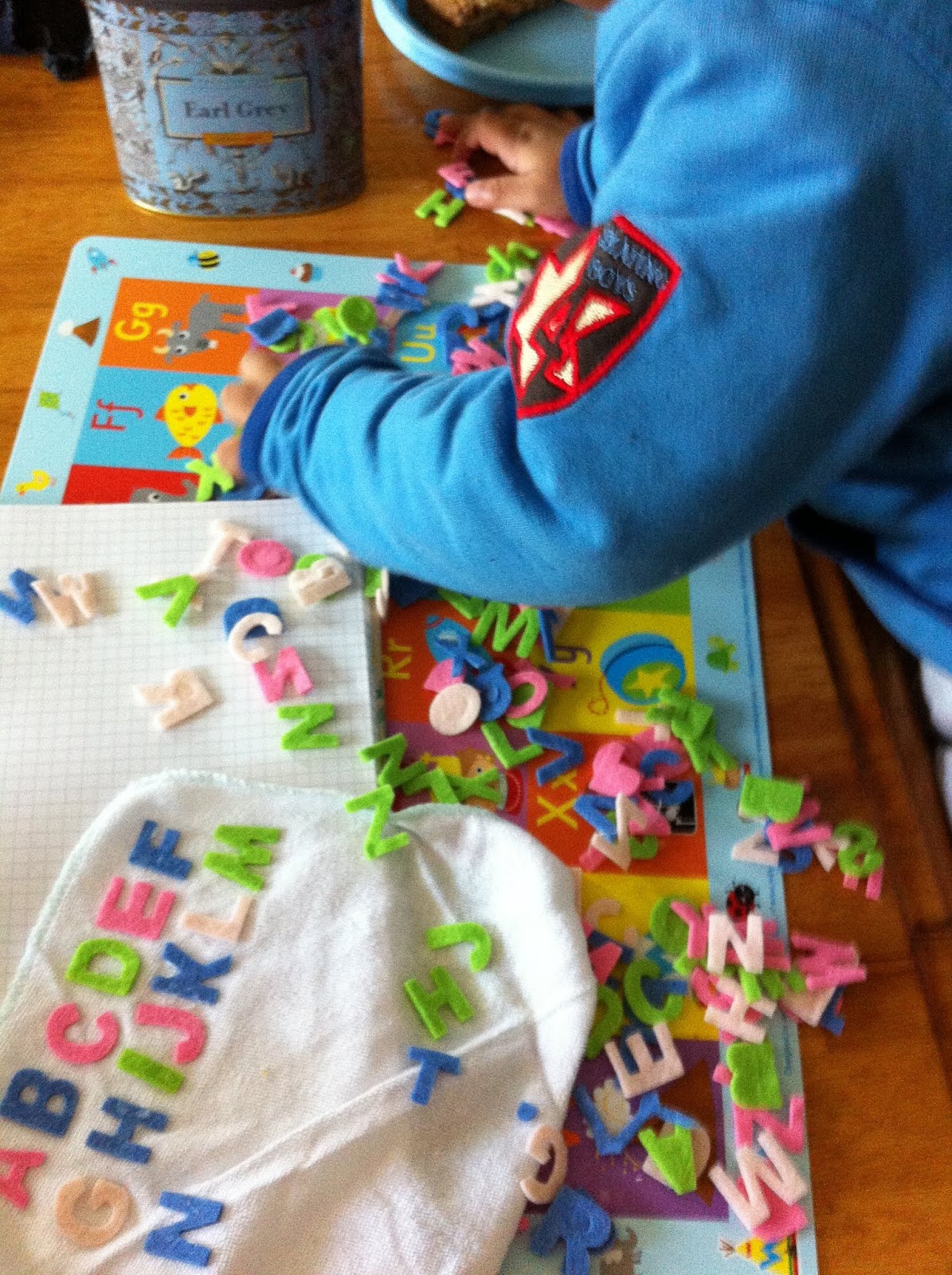 He has started recognizing the alphabets and the tune of the abc song. So we did a small activity.