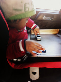 I decided to keep it for him in the car to serve as a seat 'tray'...like the ones you have on the airplane! Just a little less fancier :p