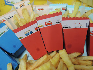 For the birthday boy..I used the car prints from the food labels and a little crepe paper to decorate.