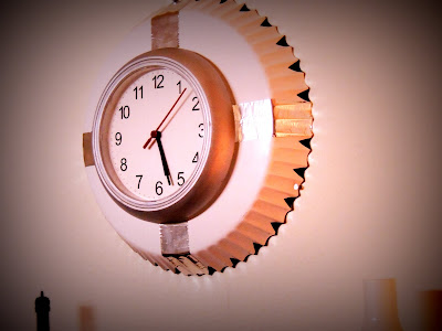 To attach the clock I asked my Handy man to drill a hole in the flan. I made another hole in the plastic clock and used wire to attach it to the metal dish.