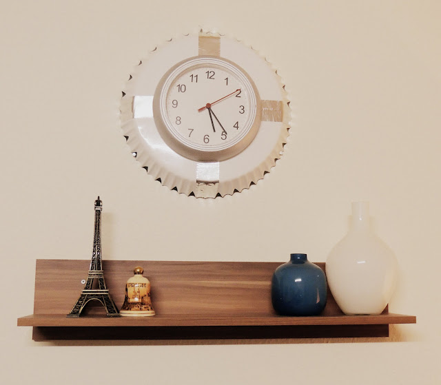 This wall clock, Ikea Rusch is just €1.99. It had been in my kitchen since forever. I painted it with some silver craft paint.