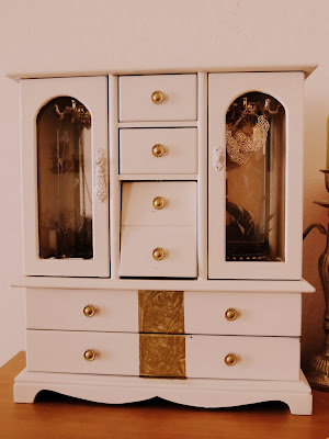This baby hutch had been bothering me for quite sometime now. It was a gift and actually did serve its purpose for storing all the gold I had after getting married...but now after 3 years I decided to give it a new face.