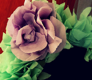 For the petals I accordian folded the crepe paper and then cut out "B" shapes from the folded crepe paper. This gave me a four edged petal. I must say all of my petals were not the same size or shape..I underestimated the concentration this petal making requires!