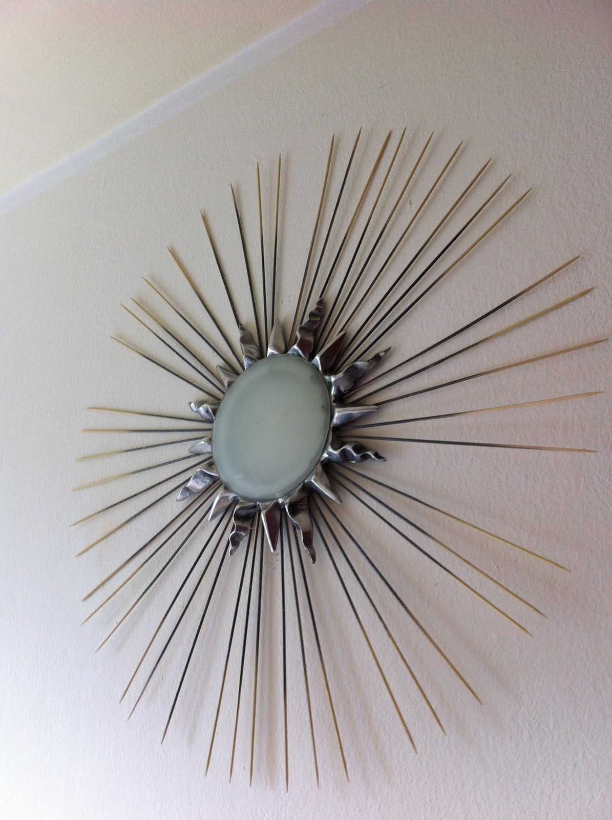 I opted for the bamboo skewers to make the sunburst. I did not have a mirror..but I used an old metal sun wall hang as my centre piece