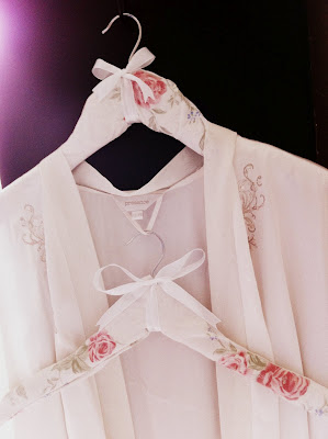 I simply took a couple of wooden hangers and some fabric (repurposed)