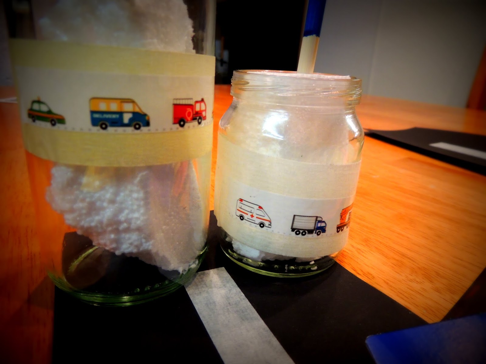 Just printed the images and glued them onto bottles of orange and apple juice.