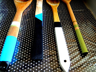So you get up one day, and before you fix yourself or your poor little two year old breakfast..you realize that your wooden spoons are too boring and need some blog worthy treatment !