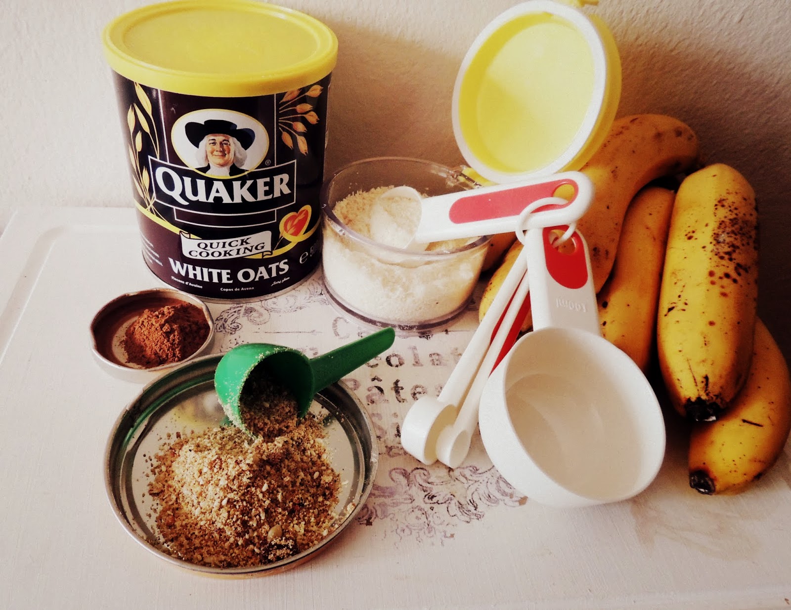 Today, while browsing for some healthy breakfasts I came across these too instant and healthy to be true 'cookies'. The best part is that they contain no flour, sugar or butter or eggs! Just a little olive oil which makes them all too good. I found the original recipe at Vintage Zest and I made some changes to it...the result is a quick Snack or breakfast to go.